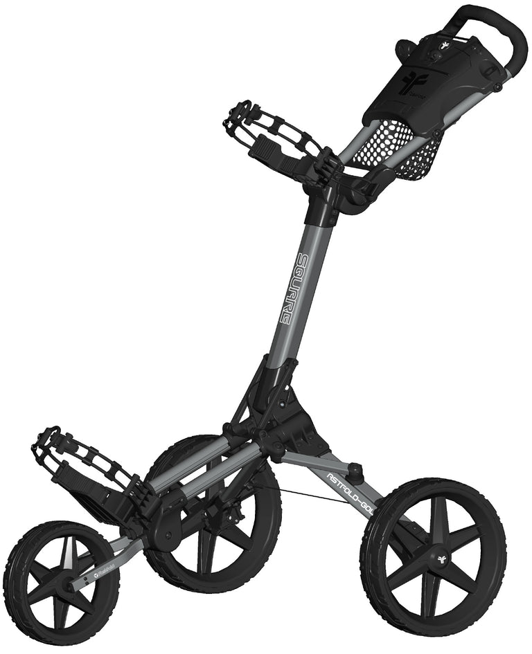 De Square golftrolley is stabiel en robuust, met de grote wielen duwt u de trolley met weinig weerstand over de golfbaan. De Fastfold Square golftrolley is eenvoudig op te vouwen tot een compacte 48 x 48 x 38 cm makkelijk mee te nemen trolley met een gewicht van 7 kg.